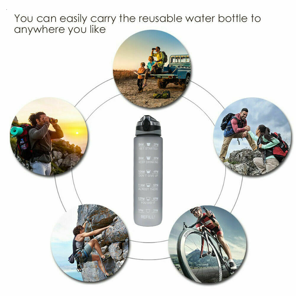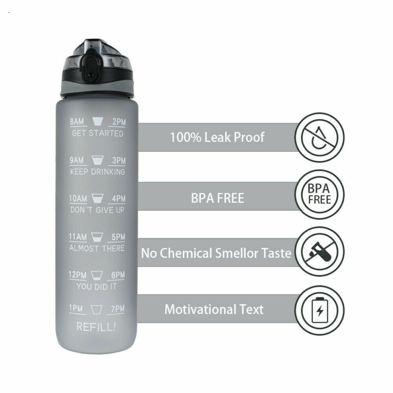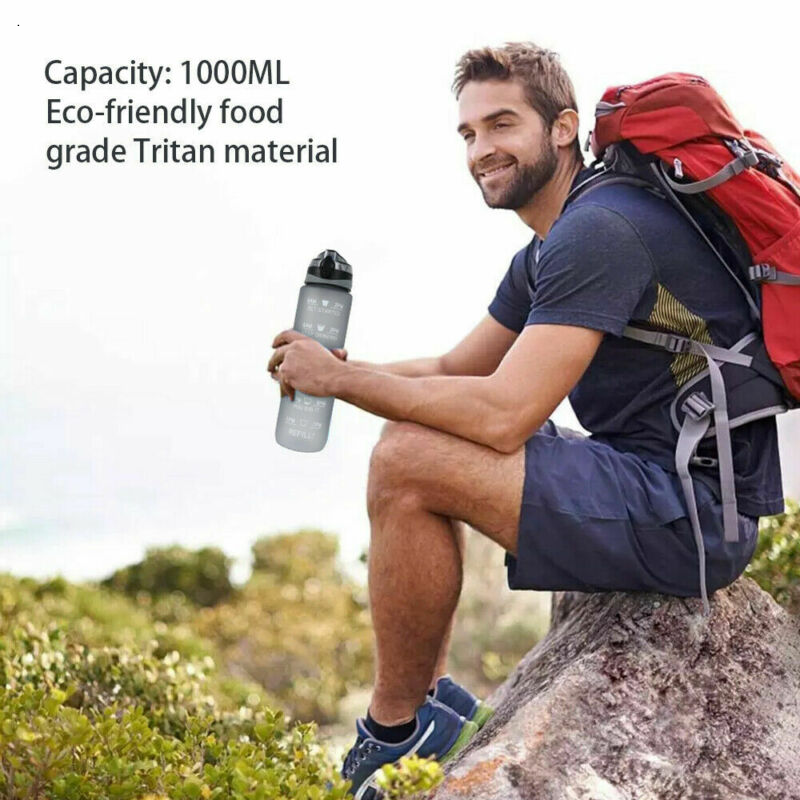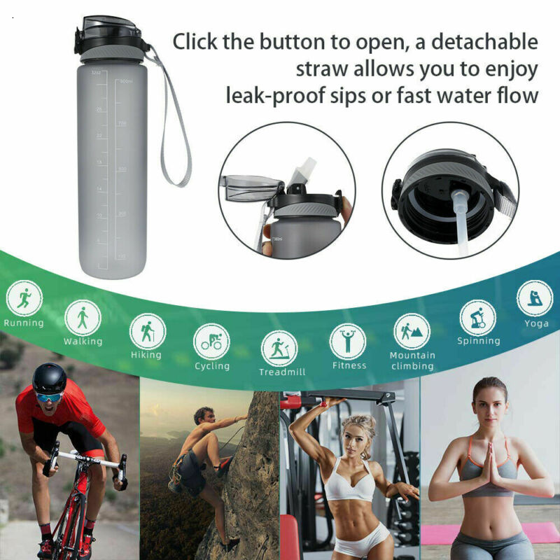 1L Sports Water Bottle Gym Travel Leakproof Drinking Bottle With Straw BPA Free