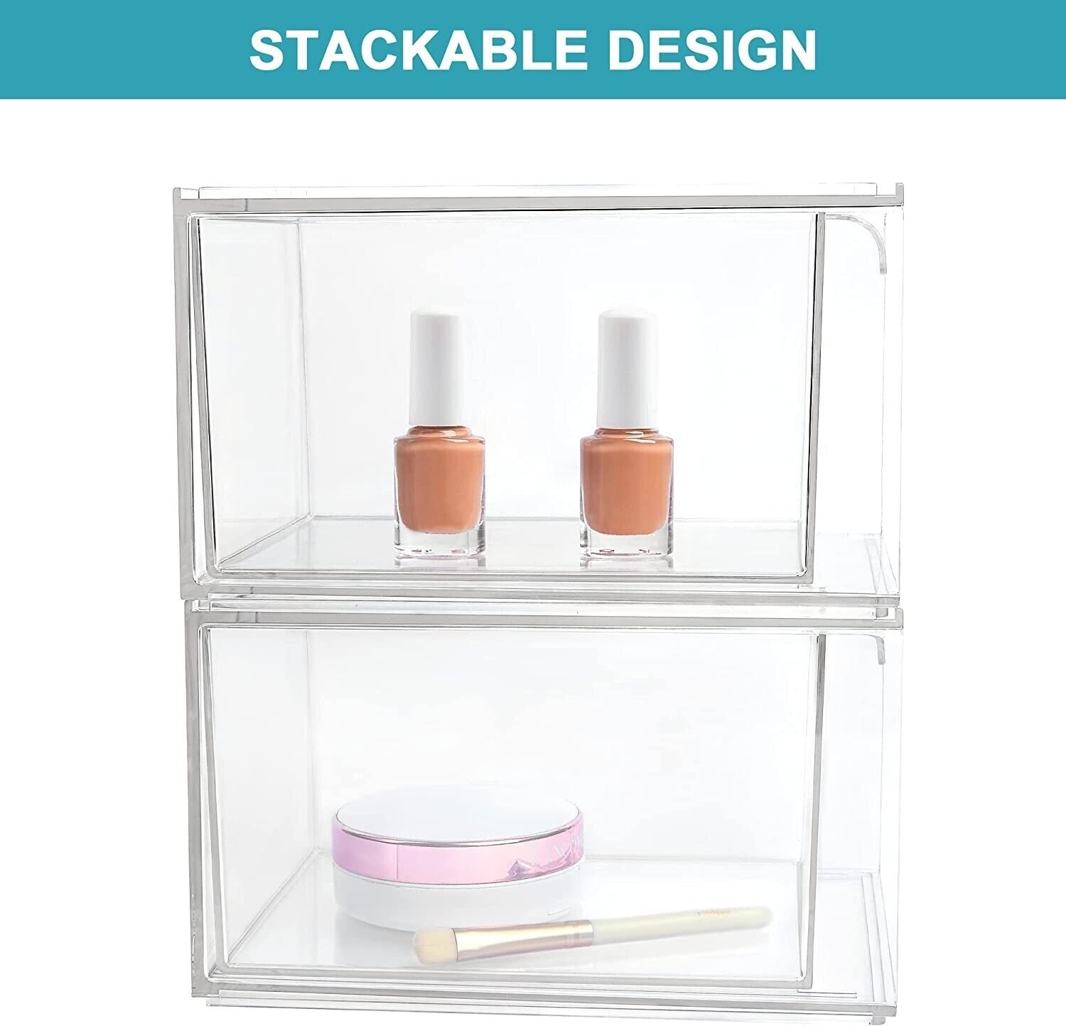 2 Pack Stackable Makeup Organizer Storage Drawers, 4.4'' Tall Acrylic Bathroom O