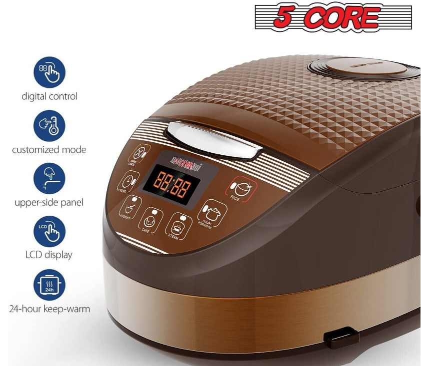 4. Upgraded Inner Pot: 5 Core brings you nothing but the best Asian rice cooker in the market, which is not only Nutritious but also 100% toxic-free because of its 8x Bonded Granite nonstick inner pot. This Rice cooker is completely dishwasher safe, 100% toxic-free, and more durable than ceramic and conventional pots.