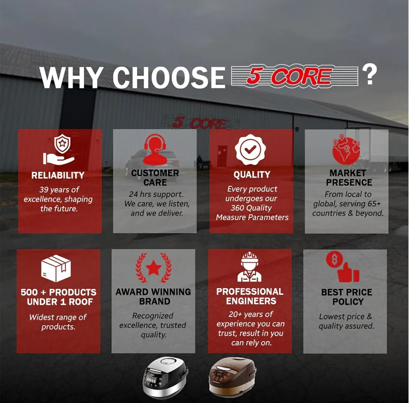 5 Core, headquartered in California, warehouse in Bellefontaine, OH, USA, has a reputation for being a trusted and reliable brand, offering products designed to meet the highest industry standards. Our products are thoroughly tested and inspected before they are sent to the end user, ensuring that the customers receive products of the highest quality and reliability. With a commitment to quality, affordability, and customer satisfaction, 5 Core is a brand people can trust for all their needs and wants.