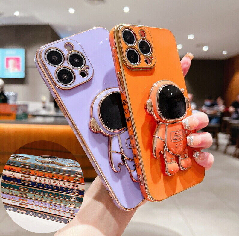 For iPhone 13 12 Pro Max 11 XR XS 7 8 Plus SE Plating Astronaut Stand Case Cover