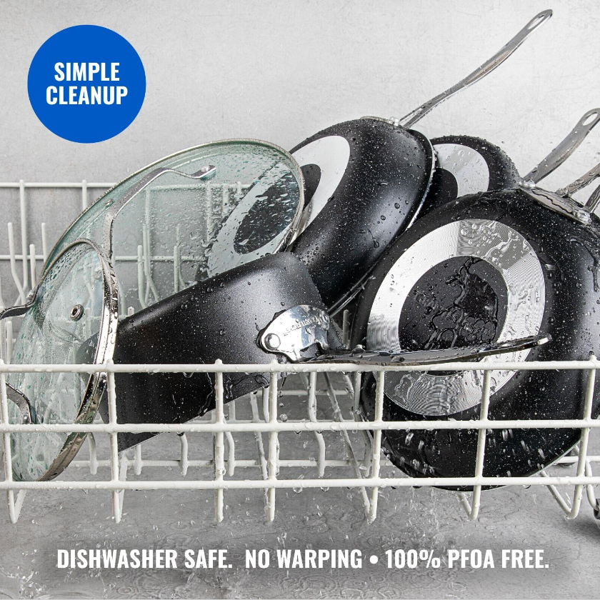 • EFFORTLESS CLEANUP, DISHWASHER SAFE: Spend less time with cleanup! After all the cooking and prepping is done, place cookware in the dishwasher for quick and easy cleanup.