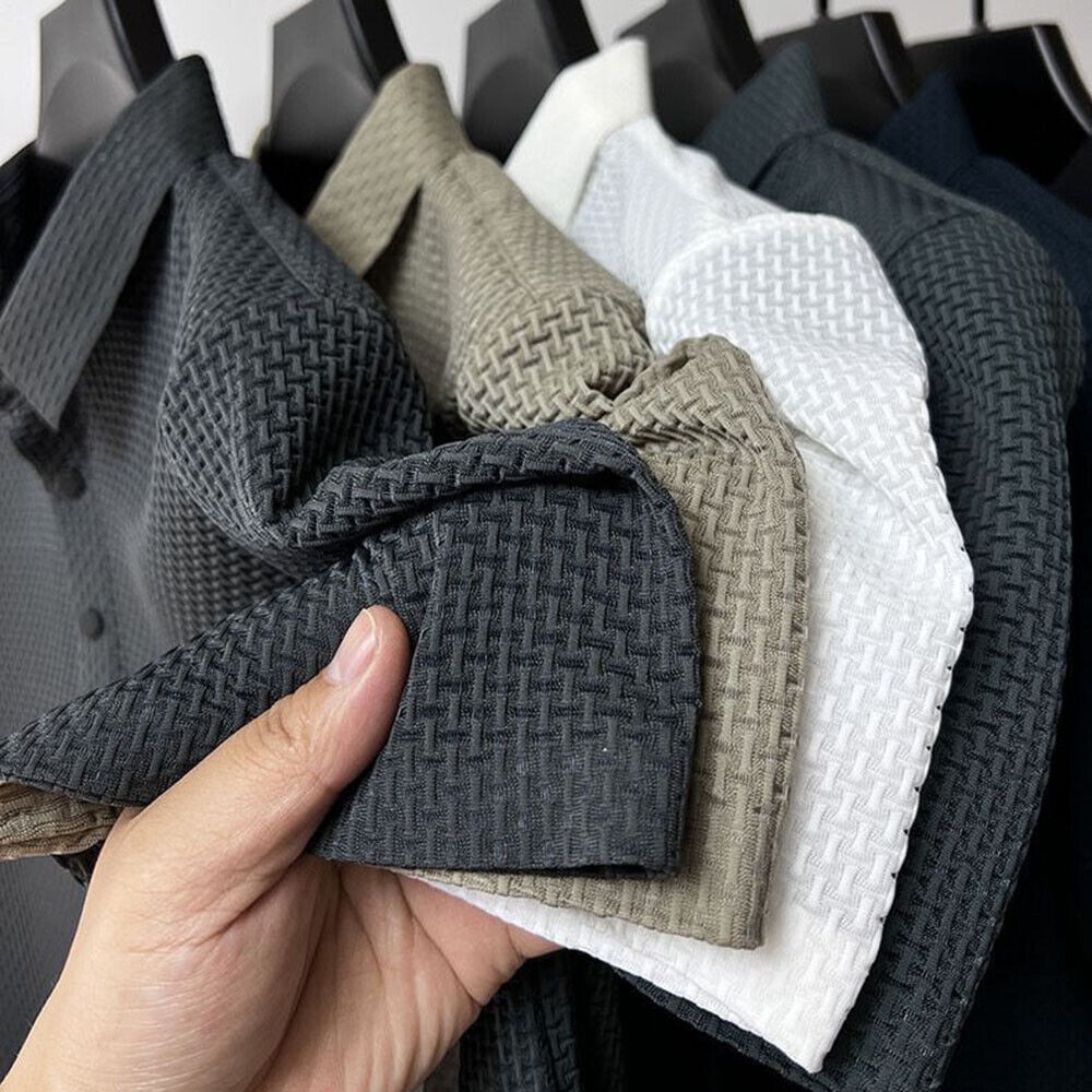 Mens Slim Ice Silk Business Dress Shirts Short Sleeve Tops Tee Pullovers T-Shirt