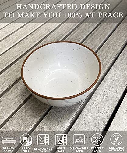Mora Ceramic Bowls For Kitchen, 28oz - Bowl Set of 4 - For Cereal, Vanilla
