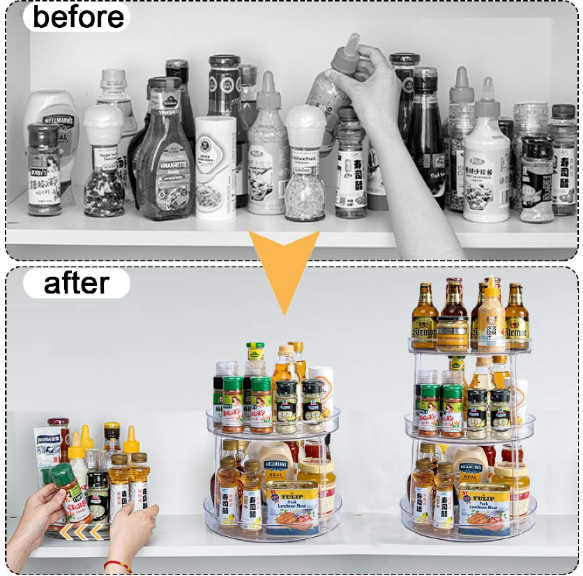 • Use this multipurpose lazy susan turntable as your spice holder, seasoning organizer, medicine/pill cabinet rack or even perfume organizer and Makeup Organizer Cosmetic Storage.