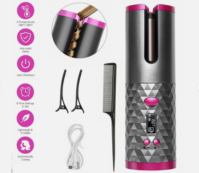 USB Cordless Automatic Rotating Hair Curler Hair Waver Curling Iron Styling Tool