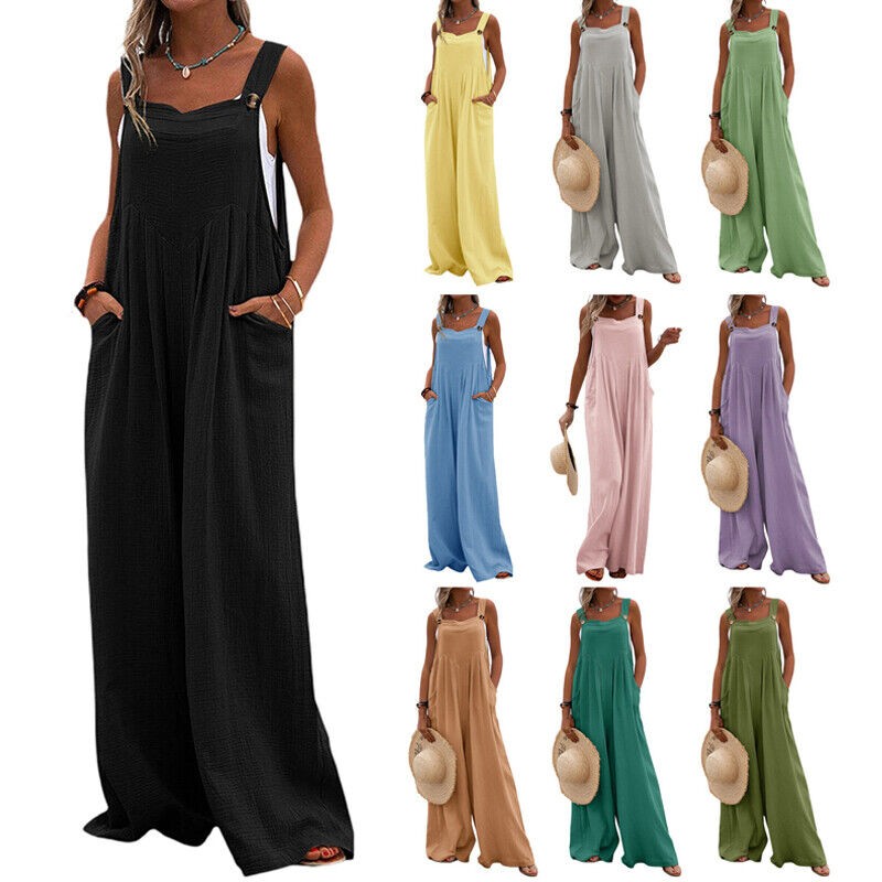 Women Jumpsuit Pants Ladies Playsuit Romper Wide Leg Trousers Dungaree Plus Size