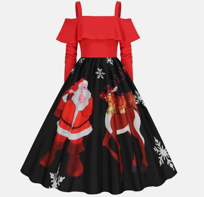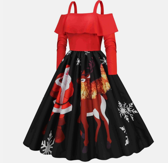 Women Vintage Christmas Dress Xmas Rockabilly Cocktail Party Flared Midi Dress