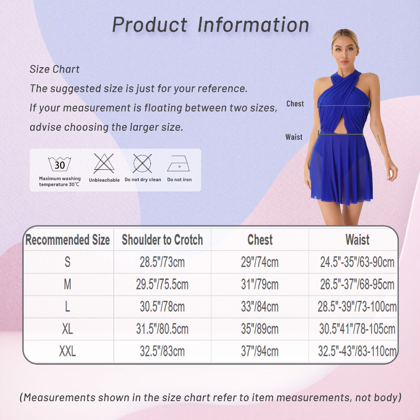 Size ChartThe suggested size is just for your reference. If your measurement is floating between two sizes, advise choosing the larger size. (Measurements shown in the size chart refer to item measurements, not body)