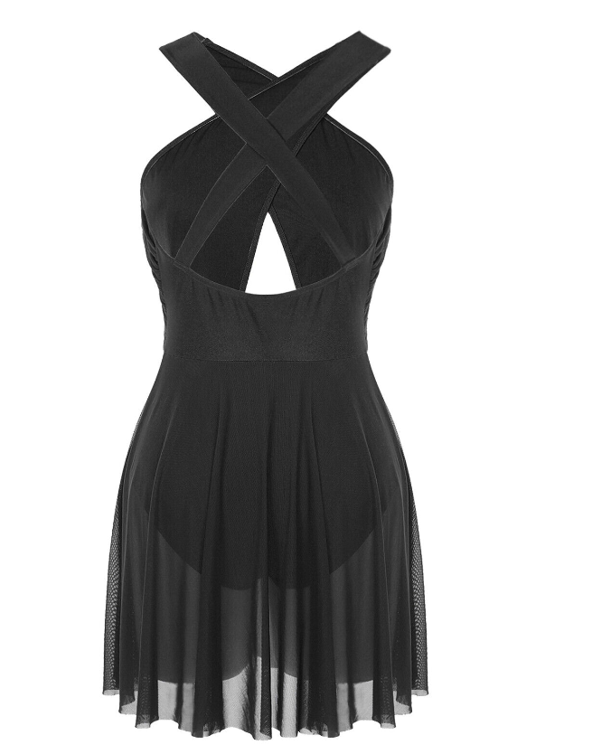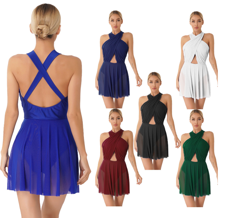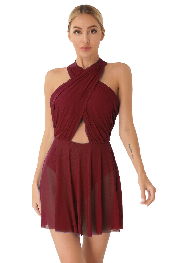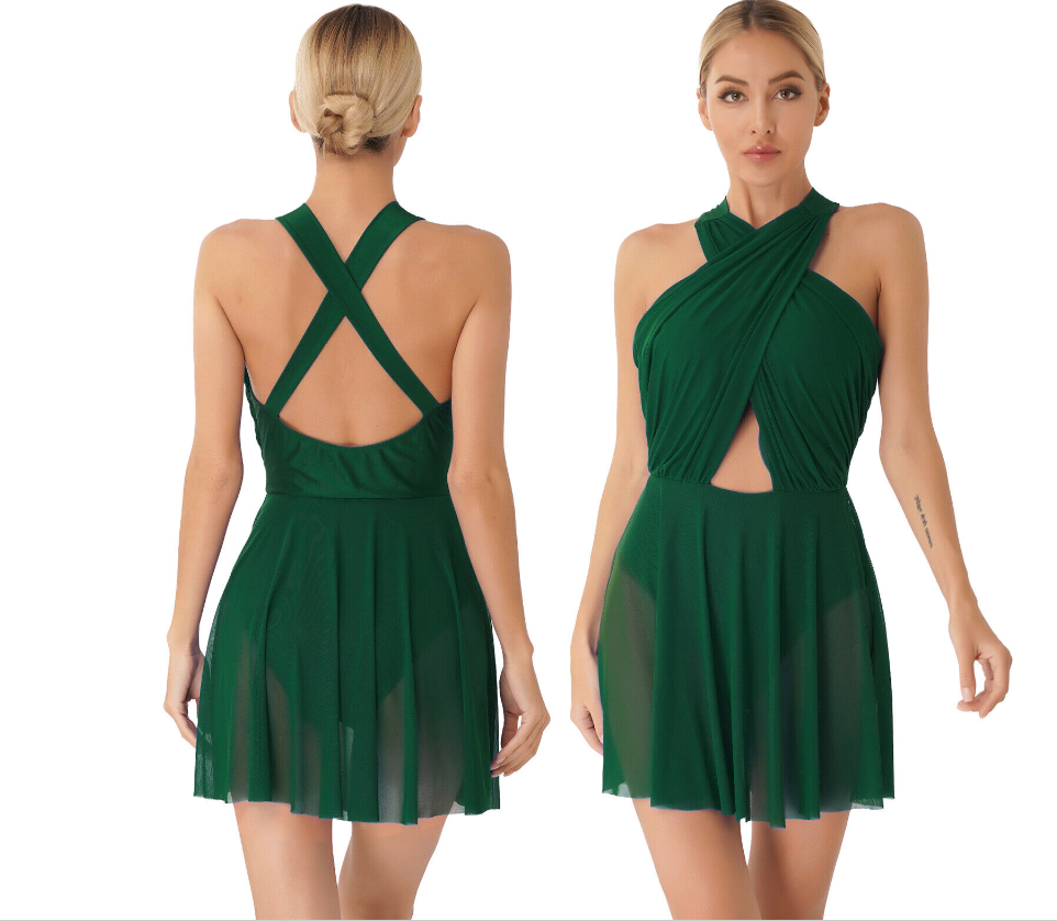 Sleeveless leotard dress for women, cross design with ruched detailing, backless with cross straps shows your beautiful back line.